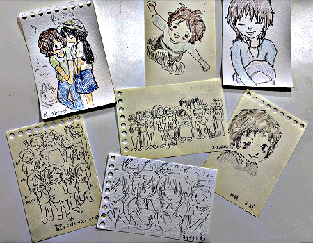 利用開始間もなくのころはスタッフの顔と名前を覚えるために似顔絵を描いていました。