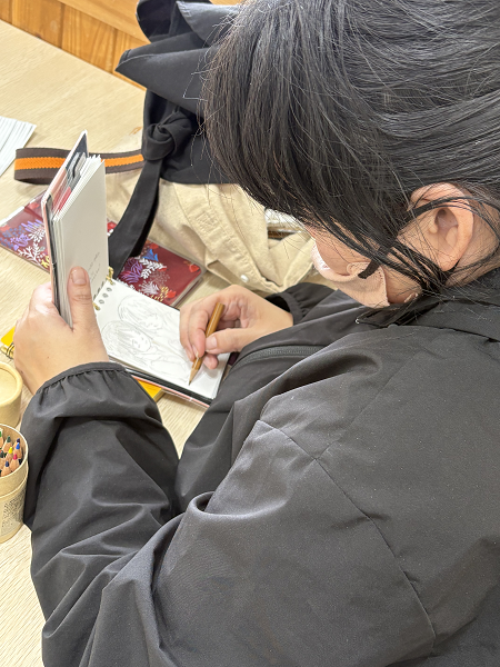 その中で今回注目したいのは、自前の小さなスケッチブックに色鉛筆やクレヨンを使って似顔絵を描いている利用者さんです!