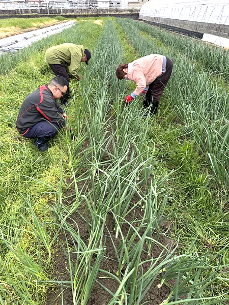 2026年04月16日 ぐんぐん成長中!玉ねぎ畑の草引き作業 この日は、玉ねぎ畑の草引きを行いました。 この日は、玉ねぎ畑の草引きを行いました。 草刈り機を使いこなす利用者さんの姿も!作業を力強くリードしてくださいました。 みんなで協力して綺麗になった畑で、玉ねぎもぐんぐん成長中。 収穫の日が今から待ち遠しいですね♪ 草刈り機を使いこなす利用者さんの姿も!作業を力強くリードしてくださいました。 みんなで協力して綺麗になった畑で、玉ねぎもぐんぐん成長中。 収穫の日が今から待ち遠しいですね♪