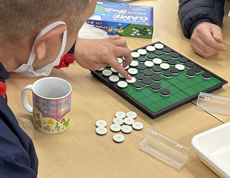 仲間とオセロや将棋の白熱した闘いを繰り広げる人、談笑する人、静かに読書を楽しむ人・・・