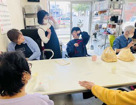 2025年12月10日 今月の開所日♪ 今回の開所日は、ジェスチャーゲームで盛り上がりました 各々で題材を表現するゲームです。作業では知りえない表現力♫ 満面の笑みでハイチーズ!! 今回の開所日は、ジェスチャーゲームで盛り上がりました 各々で題材を表現するゲームです。作業では知りえない表現力♫ 満面の笑みでハイチーズ!! 楽しい1日でした。来月の開所日もお楽しみに♪ 楽しい1日でした。来月の開所日もお楽しみに♪