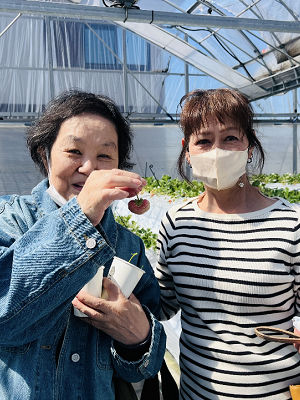 天候に恵まれ、ハウスの中は汗ばむ陽気の中、みんなで楽しくいちご狩りを楽しみました。