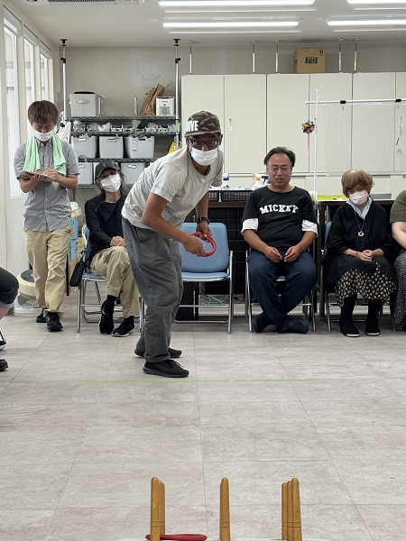 2025年10月27日 初わなげ大会! 4チームに分かれて利用者さんも職員さんもガチバトル! 一番得点の多かったチームにはお菓子詰め合わせをプレゼント♪ 新しい利用者さんも増え、とても盛り上がりました。 4チームに分かれて利用者さんも職員さんもガチバトル! 一番得点の多かったチームにはお菓子詰め合わせをプレゼント♪ 新しい利用者さんも増え、とても盛り上がりました。